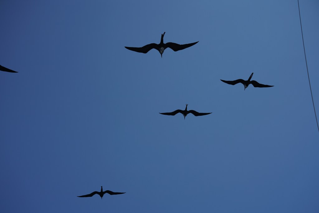 One sad note from this trip. A few days into the trip, I received a message from my sister-in-law (they had Wifi on the ship) that my brother was in the hospital. I had just spoken with him a day or two before, while I was waiting for my next flight in Miami. Two days later, he passed from stage 4 liver cancer. Ouch. The crew let me use the ships satellite phone to make some calls, and were so helpful the next few days. I decided to keep on with the activities, since my brother was so excited about me being on this trip – he and his wife were master birders, and had been to the Galapagos Islands before. Later that day, I was sitting alone below the bridge, just meditating, when I noticed what looked like the Bat Signal in shadow, moving around on the deck. I looked up to see a squadron of frigate birds, riding the air wave from the bow of the ship (we were moving to the next location)