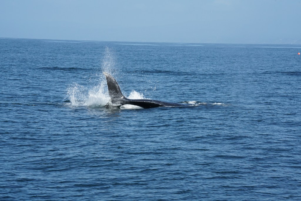 I kind of like this long distance shot of a breaching whale – nice colors.