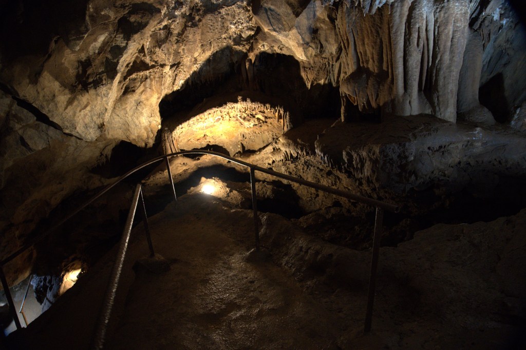 The tour lasted about an hour in the cave, as we wandered through very narrow, slippery passageways to larger areas where the guide pointed out the unique features on the walls and roofs. There was a little bit of climbing, with steps cut into the floor, and metal railings along the way. We were warned about grabbing on to the walls but sometimes, it was impossible to avoid doing that (for me at least). Everything was damp and dripping – it was pretty close to being a real spelunking experience (except for the trails and railings and lights). The guide was great – he described the features in each of the larger areas we stopped in, and threw in some of the history and interesting stories about the cave.