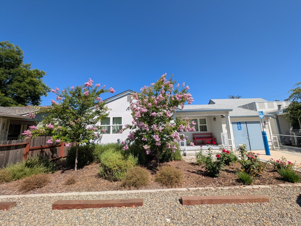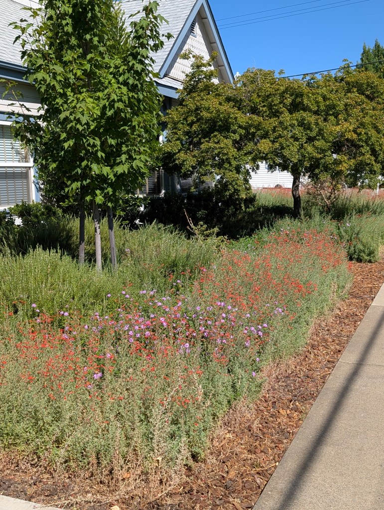 Today was a maintenance day, with a small group planting a few things, and doing a lot of weeding and cleanup. I volunteered for weeding an area overgrown with my unfavorite weed – the dreaded yellow spotted spurge. It’s sticky, and grows into thick mats. I guess you could consider it free ground cover. The rest of the crew worked on other areas. The really cool thing about the work we do, are the results. The gardens on this property are absolutely gorgeous. The church is set in an old neighborhood of Folsom, and the neighbors all comment on how absolutely beautiful the gardens are, especially now that everything is blooming. You get a sense of pride in being part of the effort to maintain this. That’s something important when you are sad and depressed a lot the time.