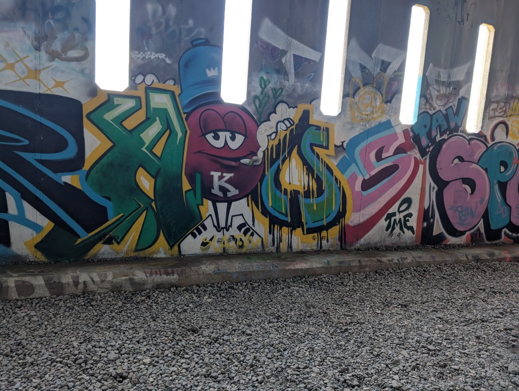 The next video shows all the street art in part of the long snow shed, and also how you can go from sunny to very dark…a bit creepy.