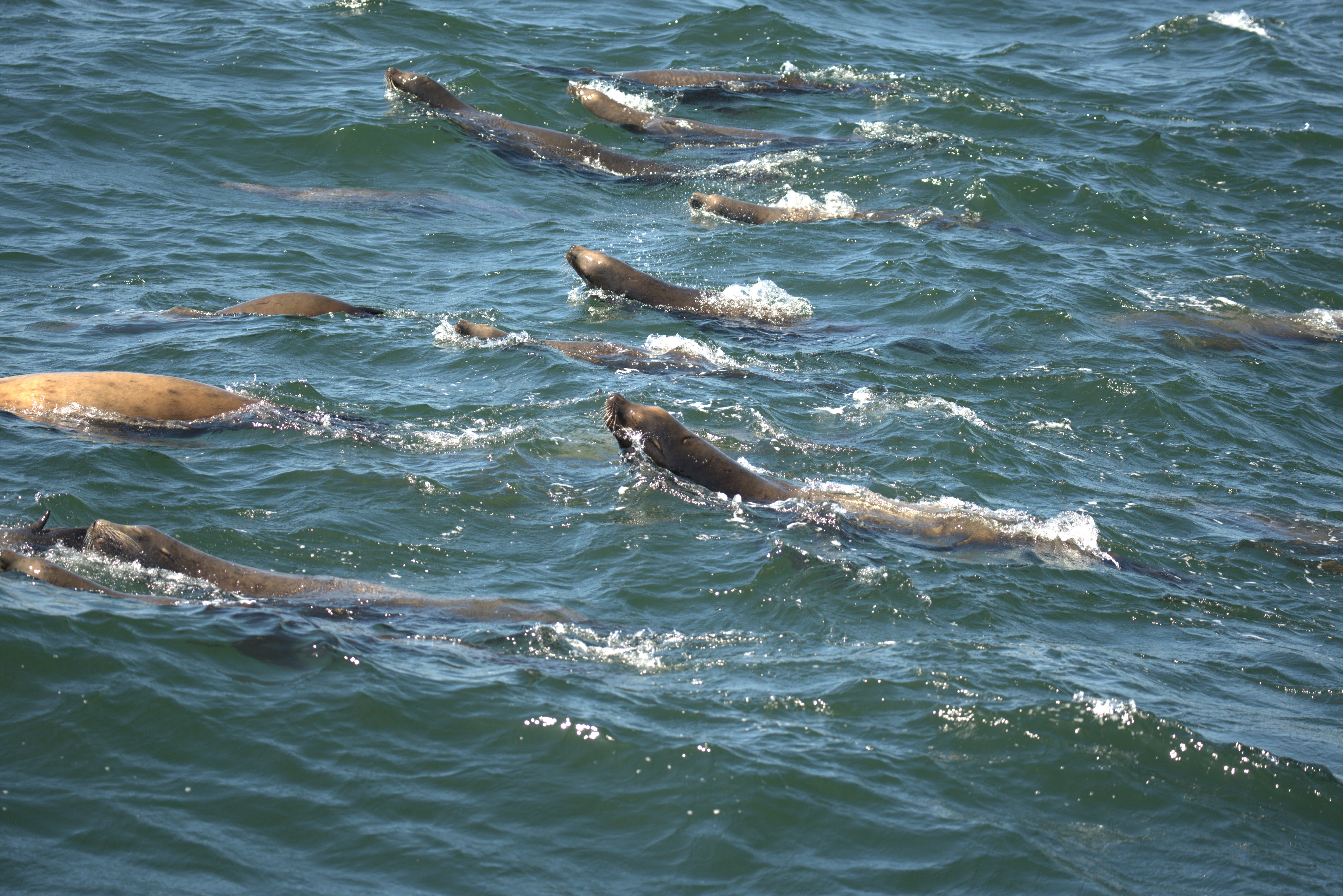 On this particular trip, my luck ran out. There were large pods of whales, gorging on very large “bait balls” of anchovies. There were swarms of sea lions, following the whales as they all gorged on the anchovies.