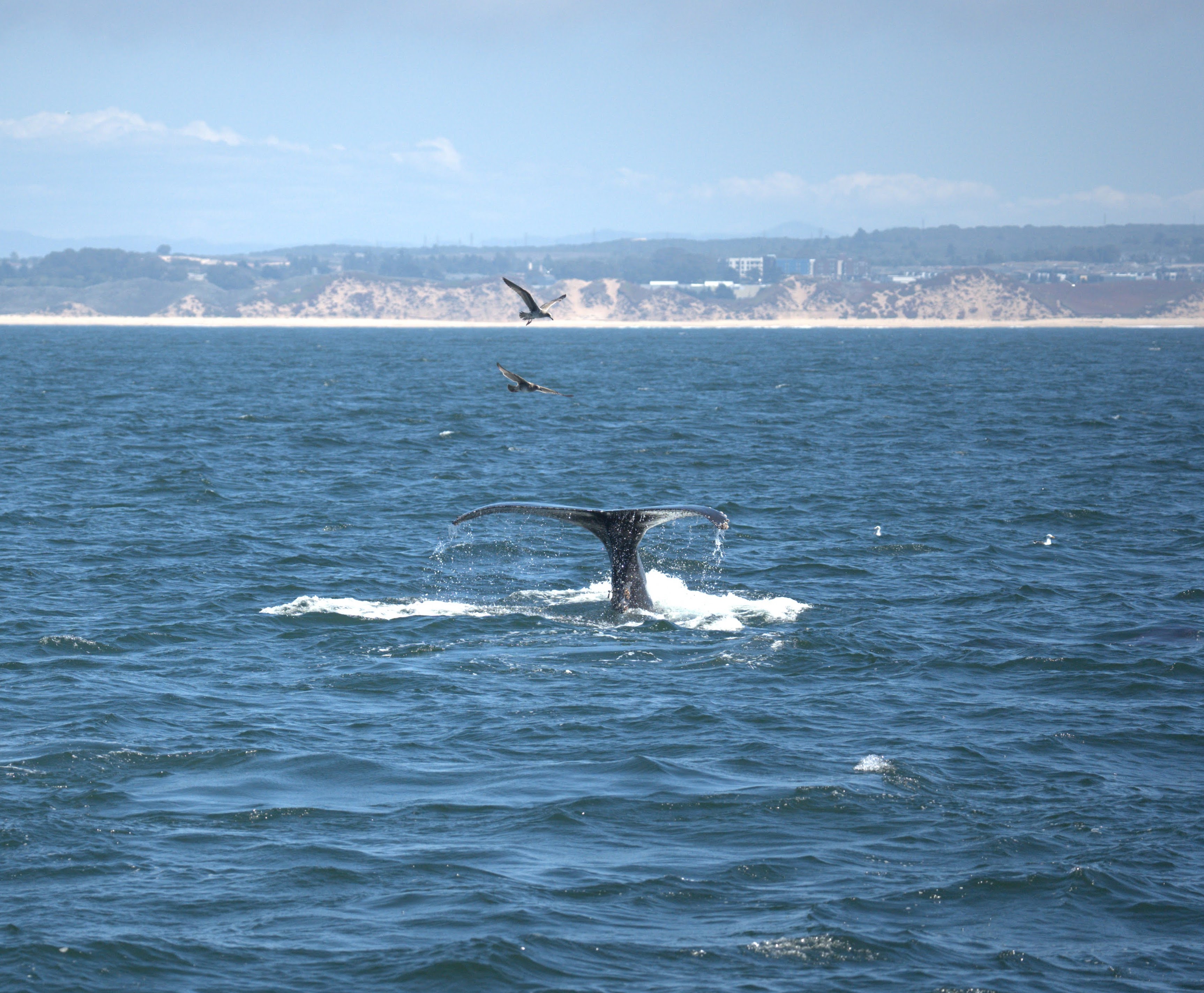 The whales did not have to dive deep, so all you would see are the spouts as they surfaced in the midsts of the sealions, and then a fluke as they dove back down. That gets ‘oohs’ and ‘aahs’ from most of the passengers, but not from semi-serious photographers Iike myself. All told, I probably shot about 25 photos. I usually have a few hundred when the whales are performing ( I can set the camera for 10 frames per second).