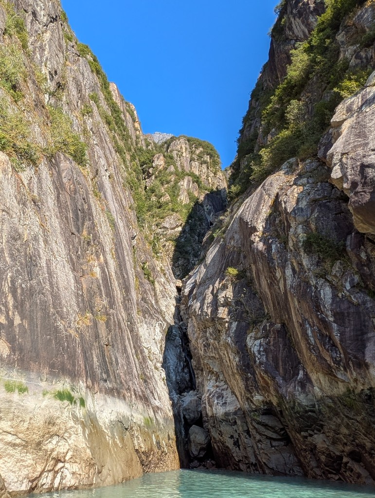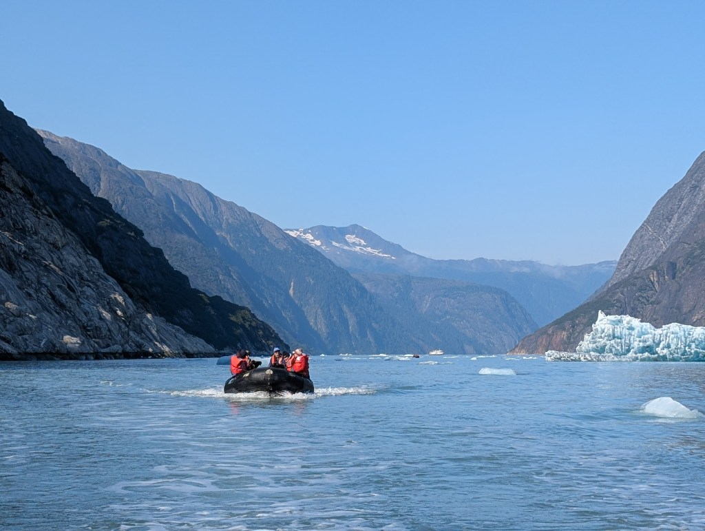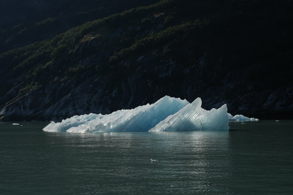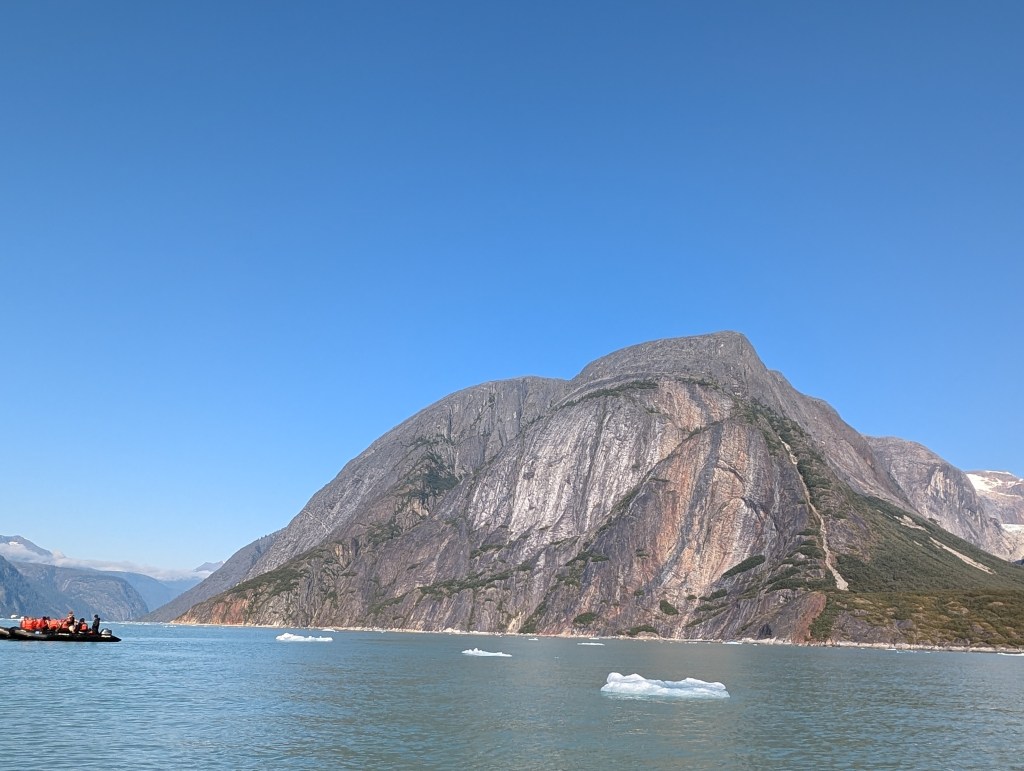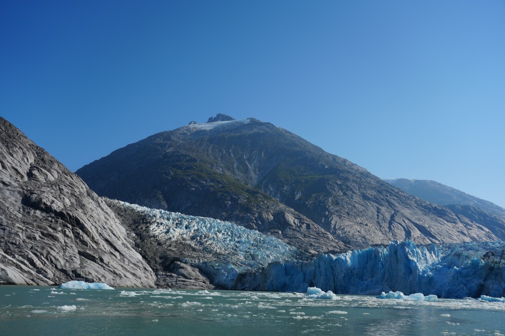 The last day turned into a real “Wow!” This was about as spectacular as Glacier Bay in terms of the scenery. We cruised overnight from Petersburg to a deep fjord, which ended with the Dawes Glacier – this is a very active, enormous, 11 miles long glacier which calves small icebergs into the fjord – these eventually float down to the main channel. The fjord itself is spectacular – a classic deep, u-shaped channel with steep rock walls, and side “hanging” valleys which at one time also had glaciers. It was a glacial geologists dream. And not too shabby for photography.