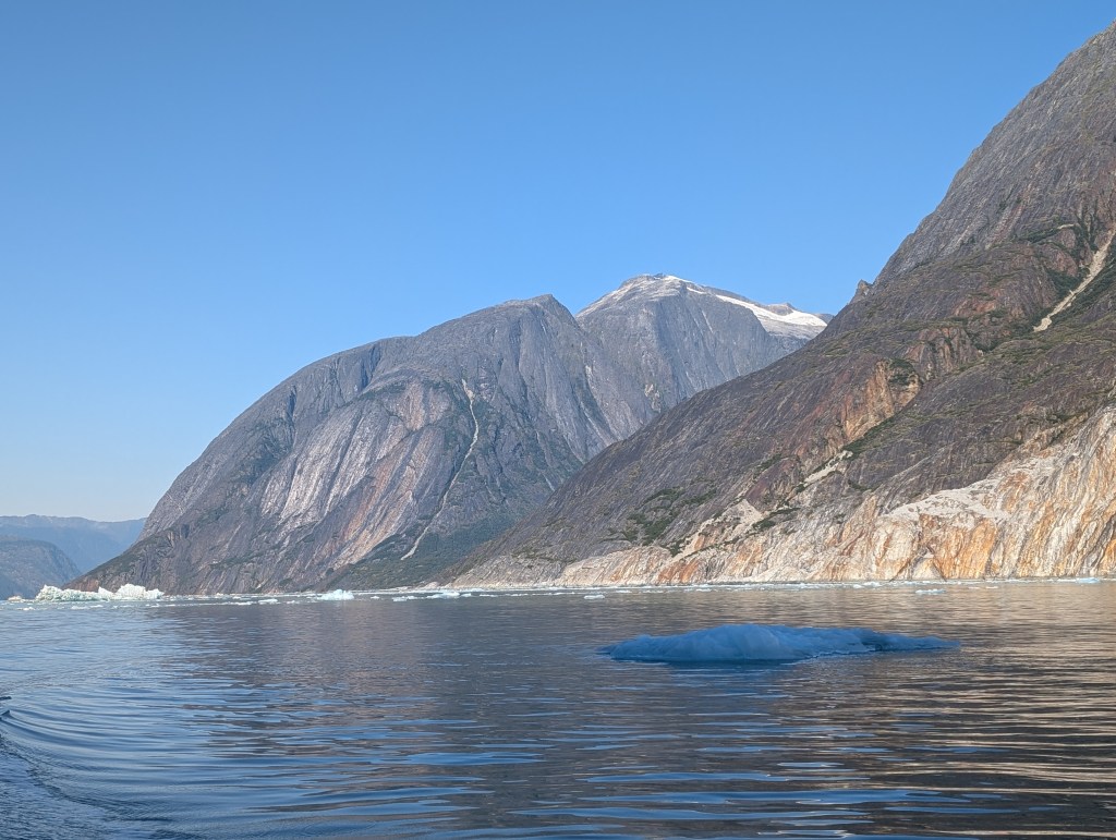The adventure for the day was taking groups out in Zodiacs, to view the fjord features, check out the floating ice, and then hang out at the foot of glacier with the hope of seeing some of the glacier crash into the bay (but not too close….large chunks make large splashes and big waves). There were only 6 passengers per boat, so there was plenty of room to move around for taking photo’s. Typical for Nat Geo trips.