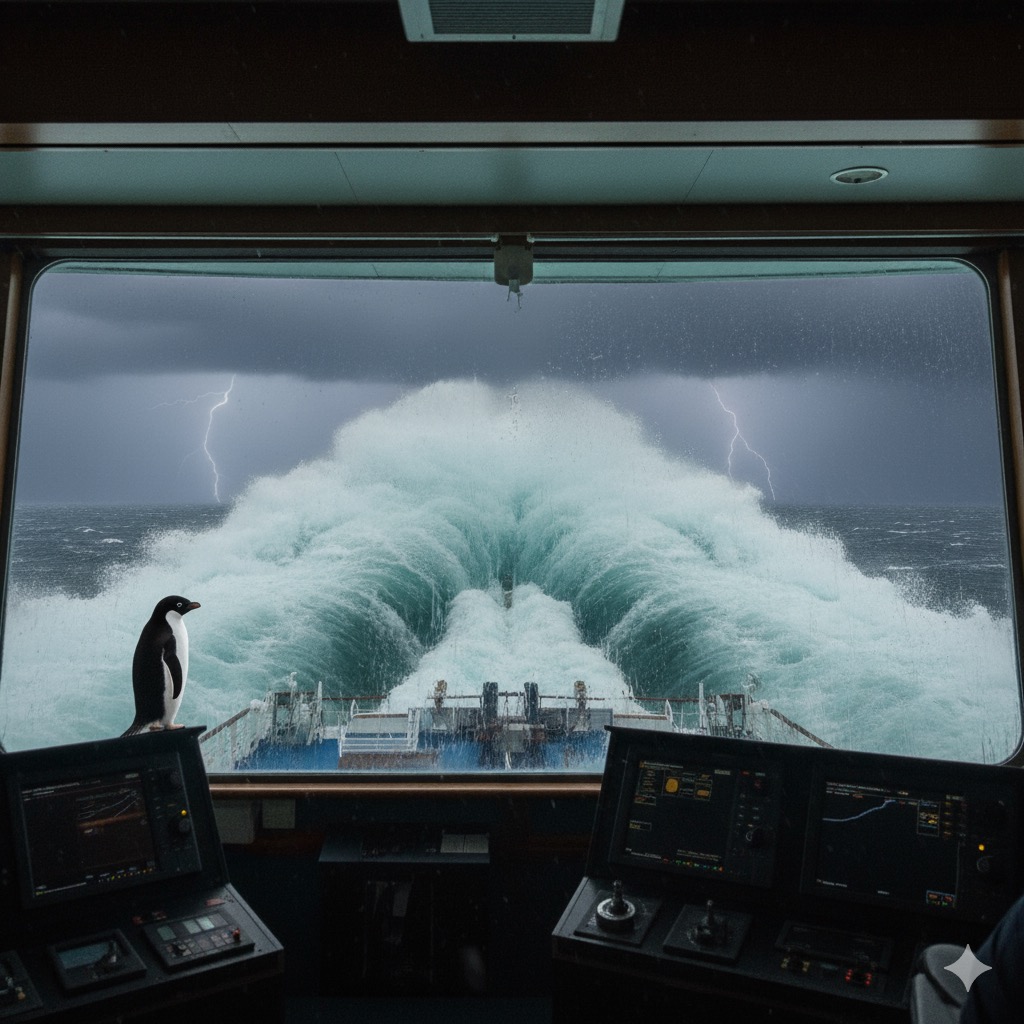 Hopefully, my next post will have photographs of giant waves crashing over the bow of the ship. And maybe some penguins too.