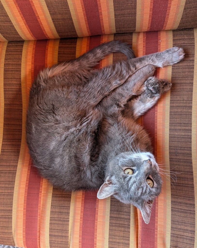 Now I had to seriously think about some of the other awful options, other than just hoping for the best (the flight is not cancelled, option 1). Is Greyhound actually a viable option (#2). Amtrak. Nope – too many train switches. I checked some sites which promote ride sharing (as in people looking for riders). That was too much like being back in college, checking a bulletin board for students with cars looking for riders to pay for gas. I was really grasping at straws. So rather than wasting any more time and getting more frustrated, I decided that option one was the best for now, and then get out of the house for a while. Here’s where that cat comes into play.