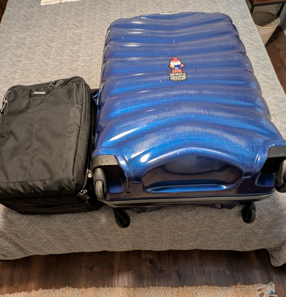 Some good news of sorts on the airline cancellations and my upcoming trip. First of all, with the shutdown likely ending by Wednesday evening, there is the possibility that the chaos at the airports might be leveling off by the time I leave on Sunday. I have been monitoring Sacramento flights each day, and Delta has not been impacted hardly at all since SMF is not in the 40 targeted airports. So far, my 9:00AM flight to LAX has left on time. So with a little bit of luck now, I’ll make it on my scheduled flights. But just in case, I am 99% packed and can head out for a rental car on a moments notice. 38 pounds of clothing, 18 pounds of camera gear.