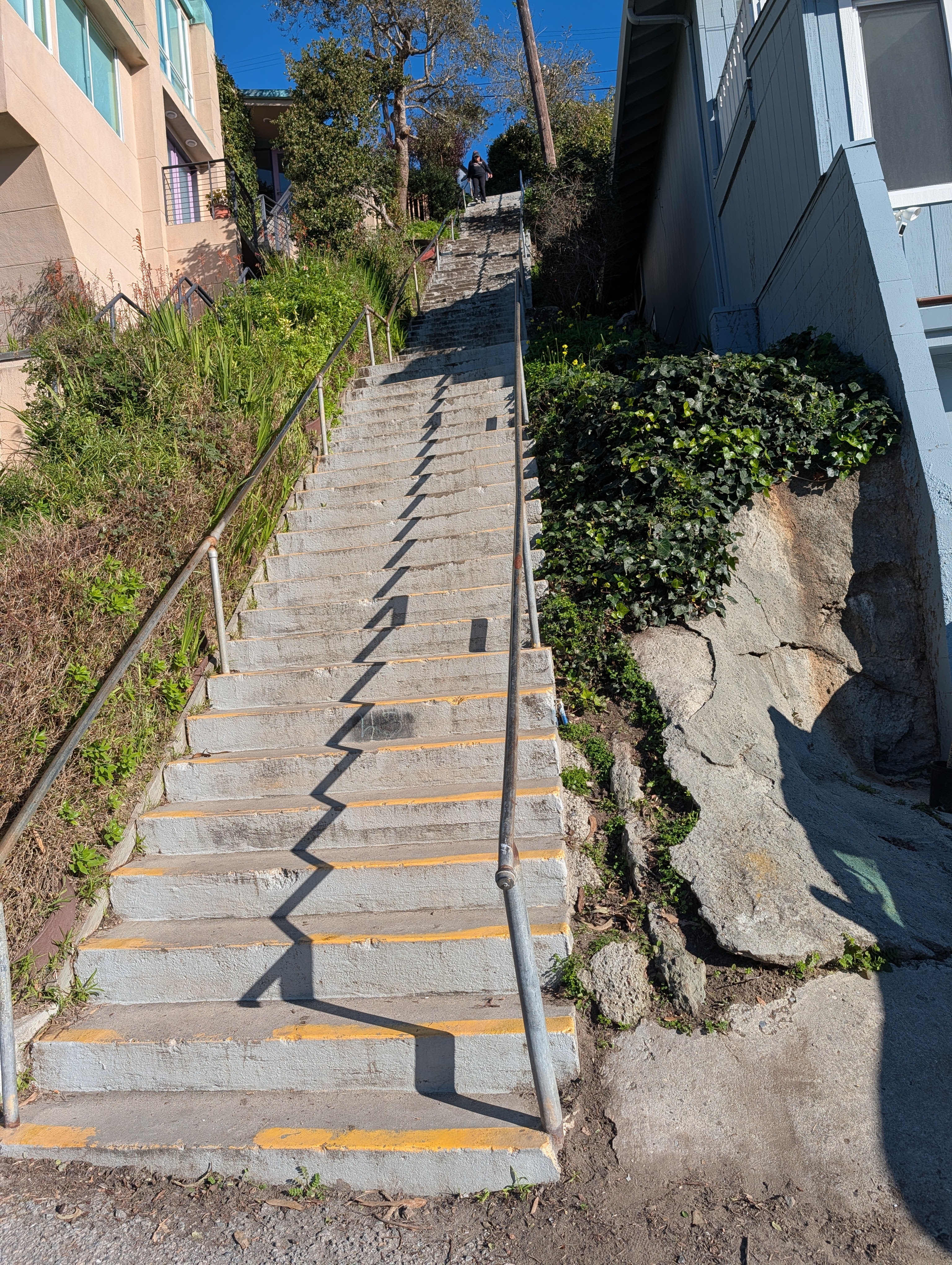 After the tour on Tuesday, I decided to visit Capitola, hoping to get a few shots on the beach, but more importantly, visit the ice cream shop (Polar Bear Ice Cream) in the village. I was pretty tired from the hike, but I always enjoy wandering along the beach there. But…tragedy. The ice cream shop was closed! They only open on weekends in the winter. I was really bummed. I wound up heading back up to the car, and stopped at a Diary Queen instead. A Blizzard was not really what I wanted, but it tasted pretty good. And I did get to climb some stairs once again. It has become an obsession.